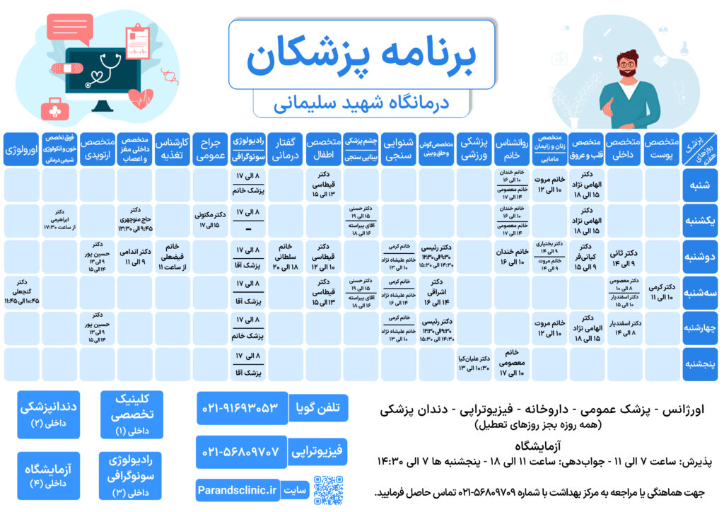 ارتباط با درمانگاه شهید سلیمانی تماس با 02191693053